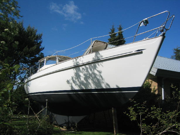 | Den 21. maj fik vi kørt båden hjem i haven og brugte denne og den efterfølgende weekend på oprydning, rengøring og småreparationer. |