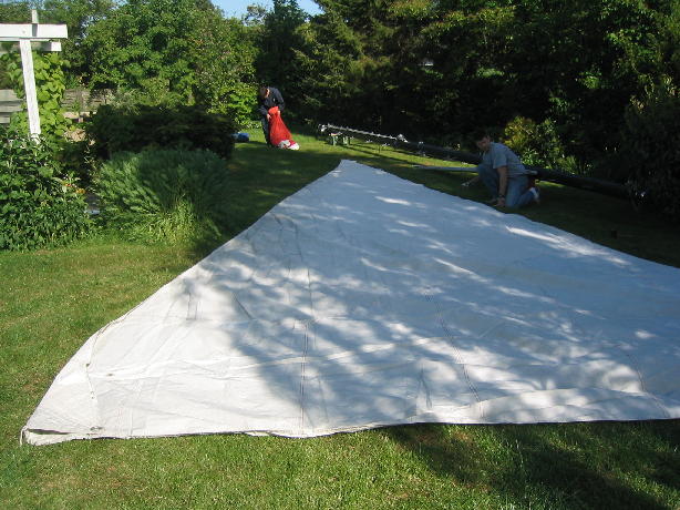 Sejlene bliver her alle pakket ud og gået grundigt efter i sømmene og opmålt.
