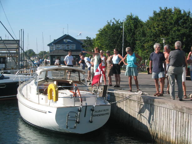 | Fredag d. 6 august 2004 kl. 17:20 kommer Albatros i vandet i Sønderborg Lystbådehavn. |