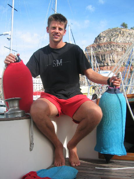 | Nu er vi for alvor kommet ned i varmen og det stabile gode vejr. Derfor laver Henrik hans garderobe om til sommertøj. Ærmerne fra en sweater og benene fra joggingbukser bliver brugt til fenderbeskytter, så de ikke piber og sviner når de gnubber op af båden. Resten af tøjet gemmer vi til pudseklude, når der skal laves motor eller poleres båd. |