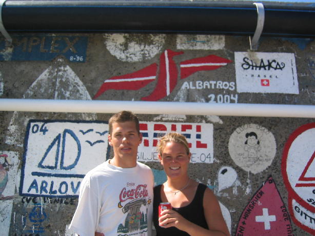 | På havnemolen i Porto Santo, er der tradition for at man maler et lille maleri. Så var det frem med den røde og hvide maling samt lidt fantasi. Jakob og Camilla malede en albatros i dannebrogs farver. Det kunne være spændende at komme hertil om mange år og gense den. |