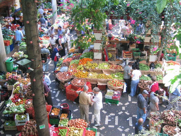 | I Funchal på Madeira var vi til et imponerende frugtmarked. Vi nåede at prøvesmage 12 forskellige eksotiske frugter, som bl.a. papaya, mango, passionsfrugt, engelsk tomat, og mange som vi ikke kender navnet på. Det var også mere end vores maver kunne klare, så for første gang på turen havde nogen af os maveproblemer. |