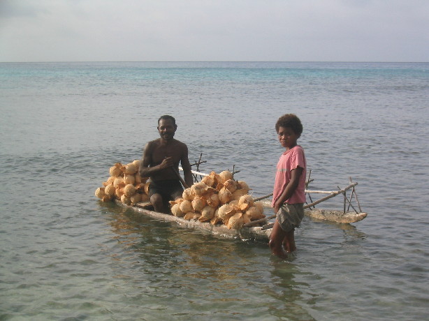 Den daglige transport af kokosnødder til landsbyen foregår til vands.